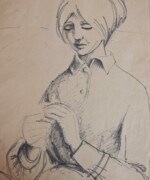 Es gab den Auftrag zu einem 2 x 3m großes Gemälde zu Ehren der Bauarbeiter in Halle-Neustadt. Der Entwurf nahm die ganze Wand ihres Ateliers in unserer Neubau-Wohnung ein. Sie hat viele Portraits und Studien dazu entworfen; am Ende wurde aus dem Auftrag nichts...